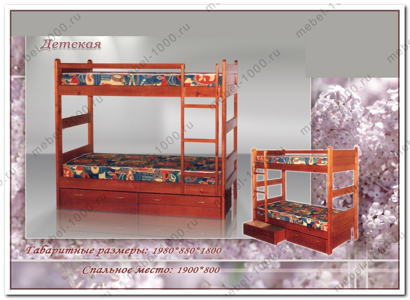 Деревянная 2-х ярусная кровать "Детская" купить недорого в Москве| Габаритные размеры (по спальному месту) мм |
