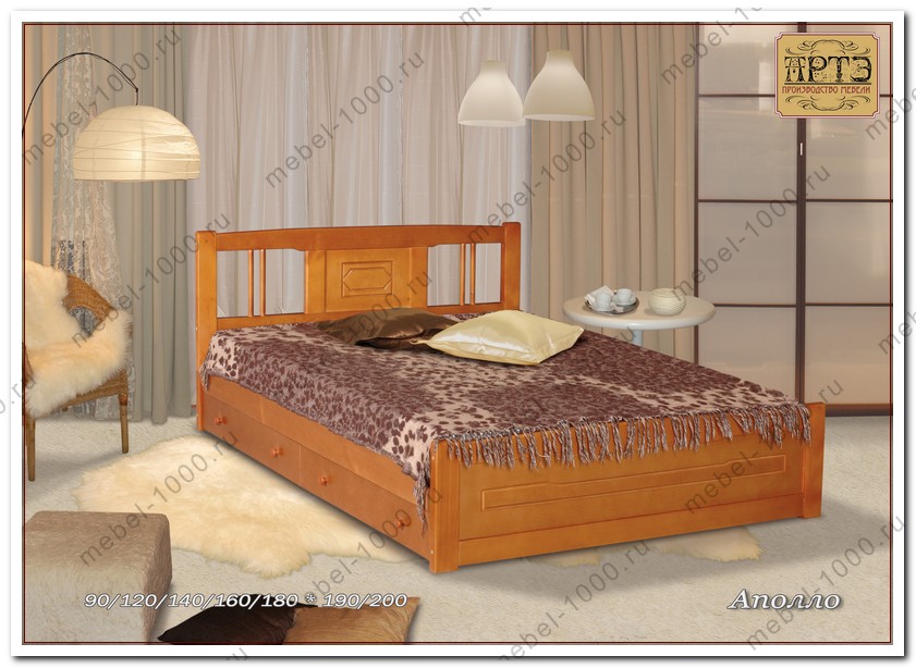 Деревянная кровать "Аполло с ящиками"