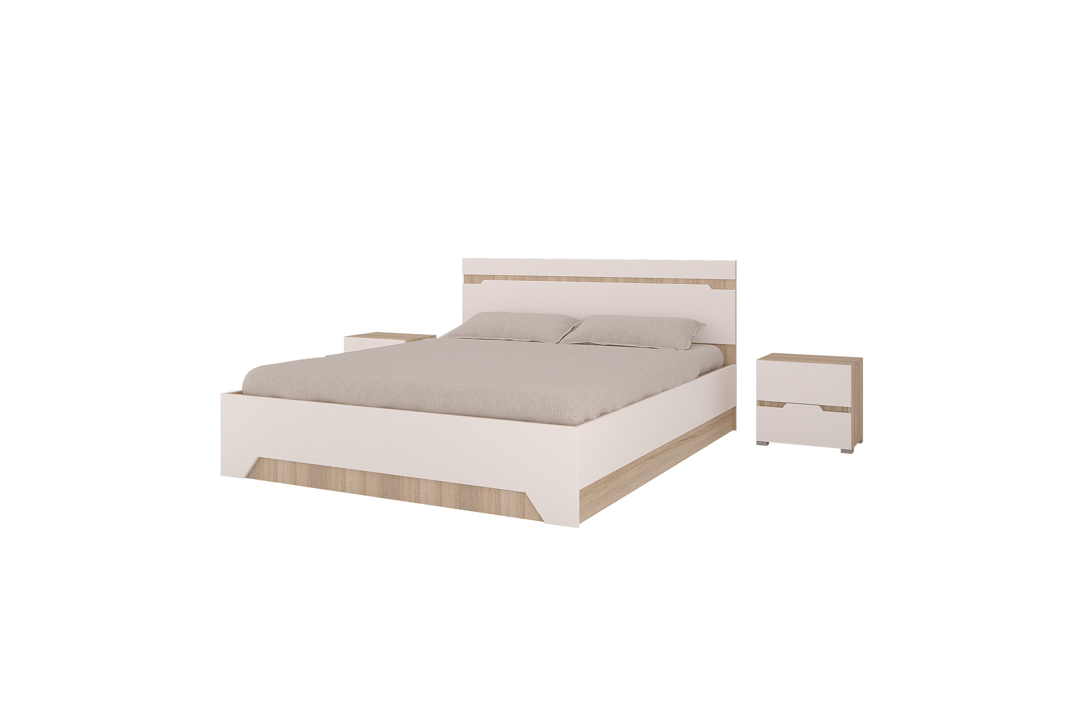 Цена указана за комплект: кровать с прикроватными тумбами 2 шт. без основания и матраца