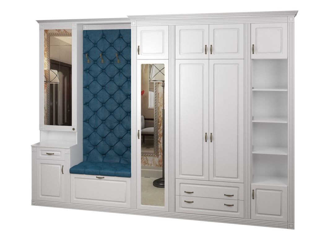 Во вкладке "Выбрать модули" Вы можете подобрать различные по комплектации шкафы, вешалки, угловой элемент. Модульная система поможет подобрать вам необходимые модули, с учетом размеров помещения, планировки.