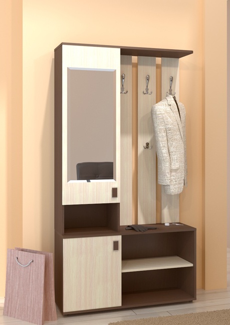 Используемый материал: ламинированный ДСП, зеркало, ламинированное ДВП, кромка 0,4 мм, стандартная фурнитура
