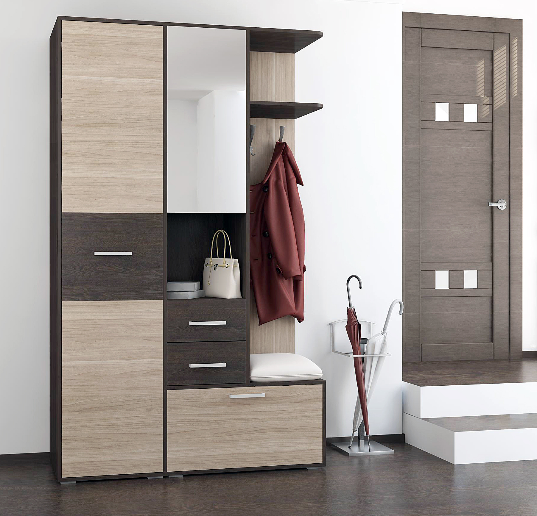 Используемый материал: ламинированное ДСП, зеркало, ламинированное ДВП, стандартная фурнитура