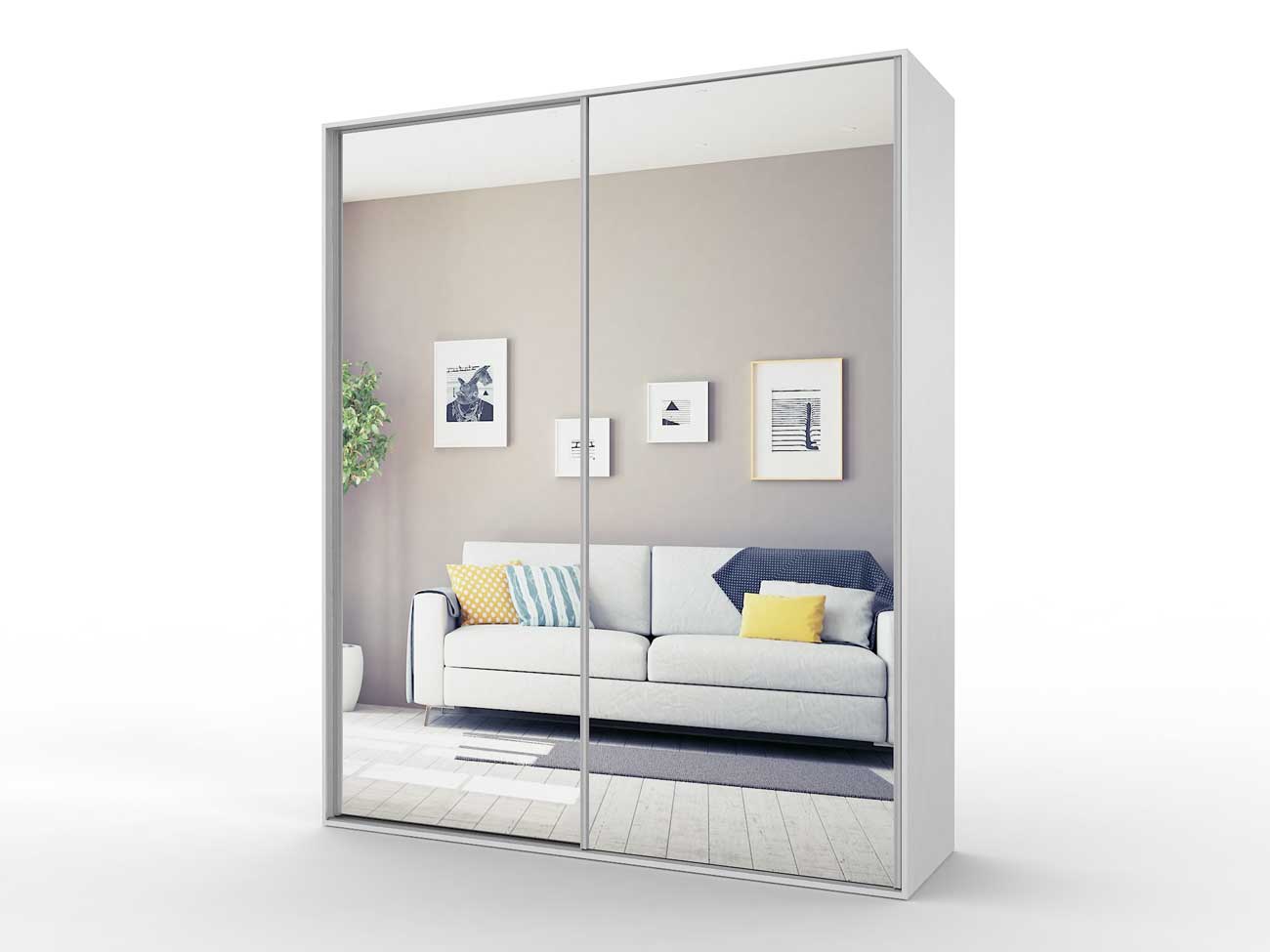 В базовую комплектацию шкафа входит кромка 0.4 мм, ручки торцевые, ламинированное ДСП 16 мм, ламинированное ДВП, направляющие Версаль, ходовые ролики РКМ-70, зеркало