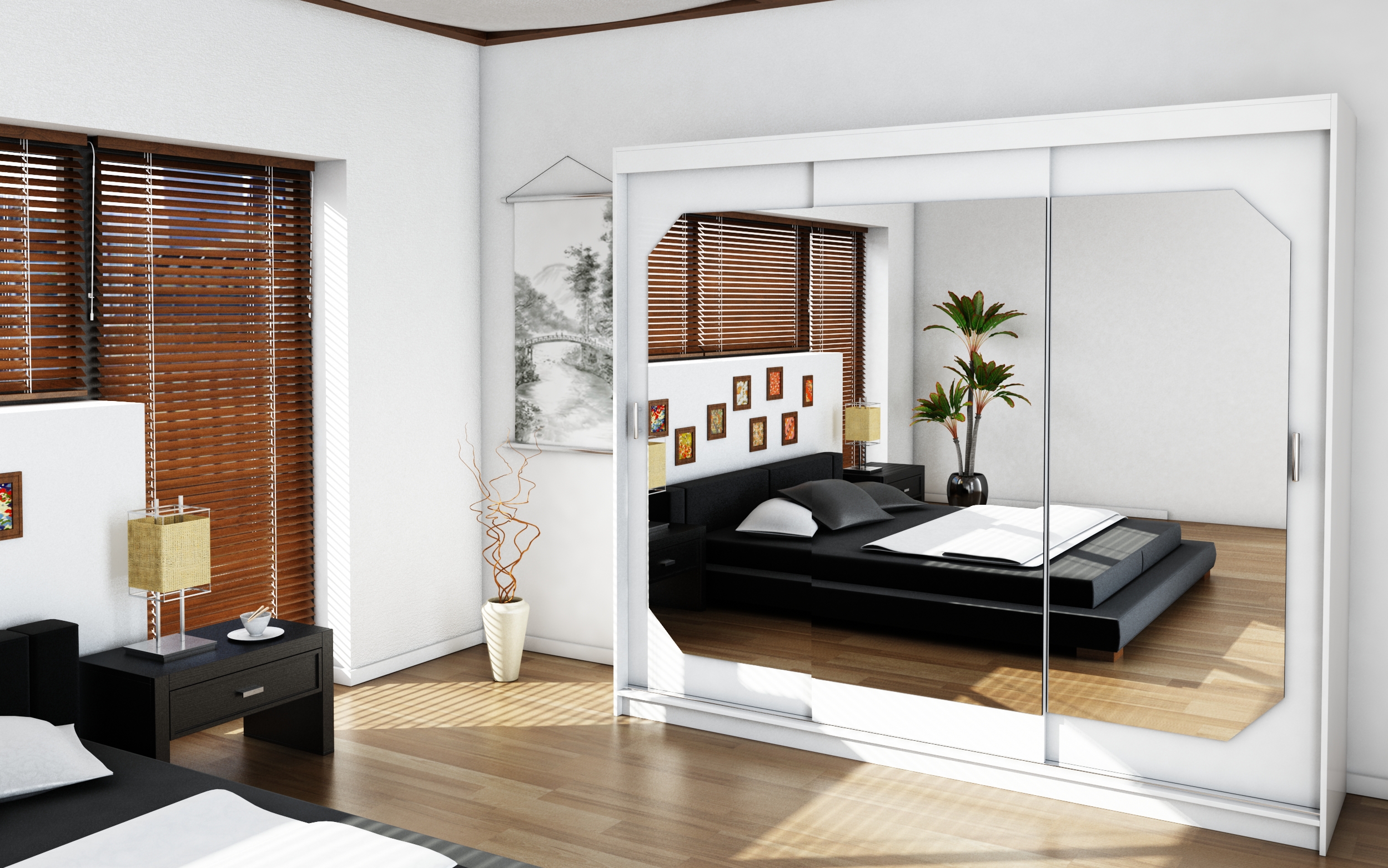 Используемый материал: ламинированное ДСП 16 мм, ламинированное ДВП, система направляющих "СКМ-80" (с опорой на нижние колеса двери), зеркало, ручка пластик, без подсветки (см. примечание ниже)