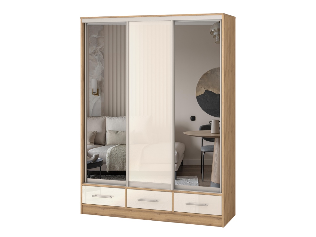 Шкаф купе 3-х дверный "Версаль" 3 ящика/МДФ/2 зеркала