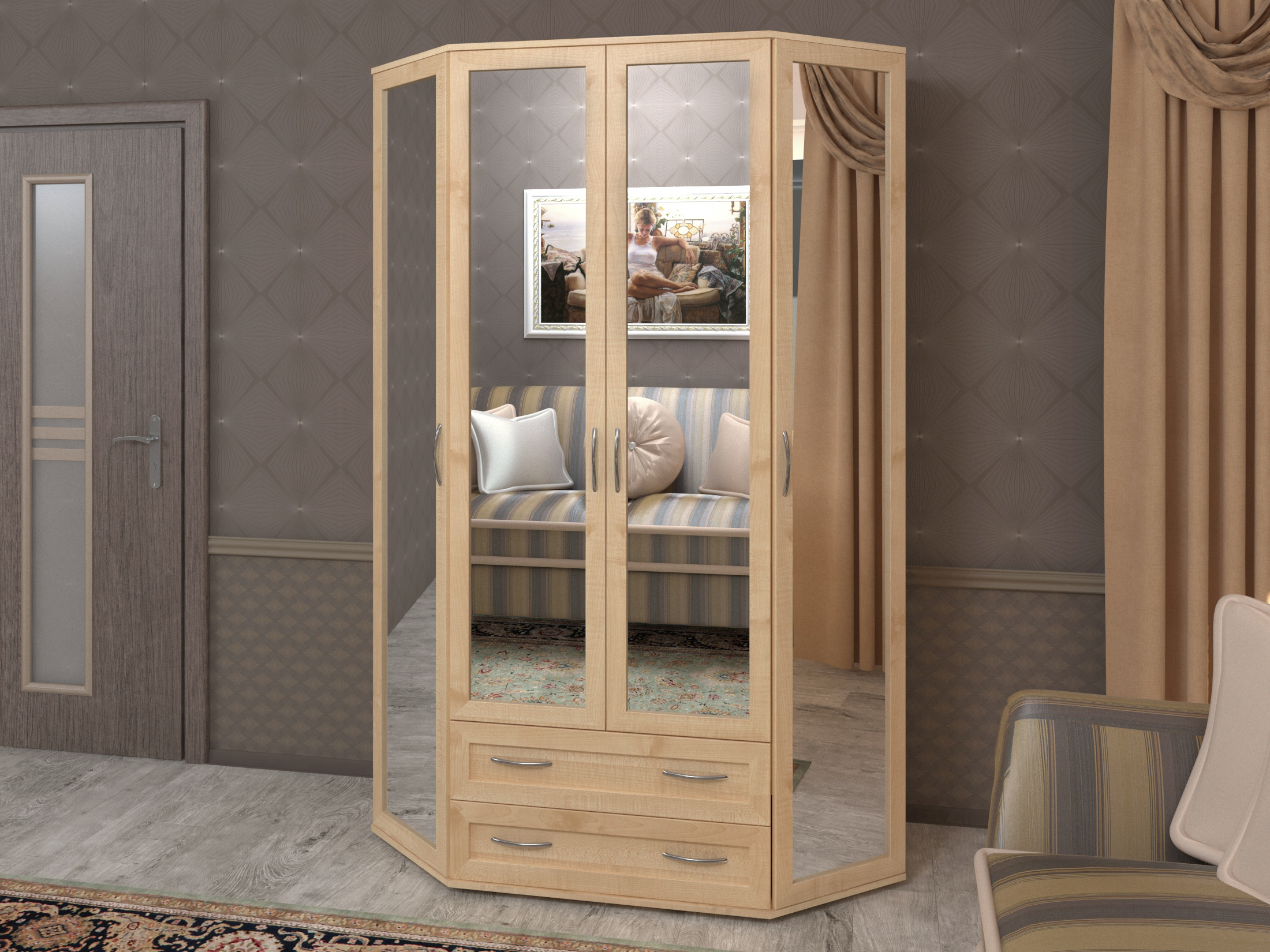 Шкаф распашной 4-х дверный "Эркер-1З" с зеркалом