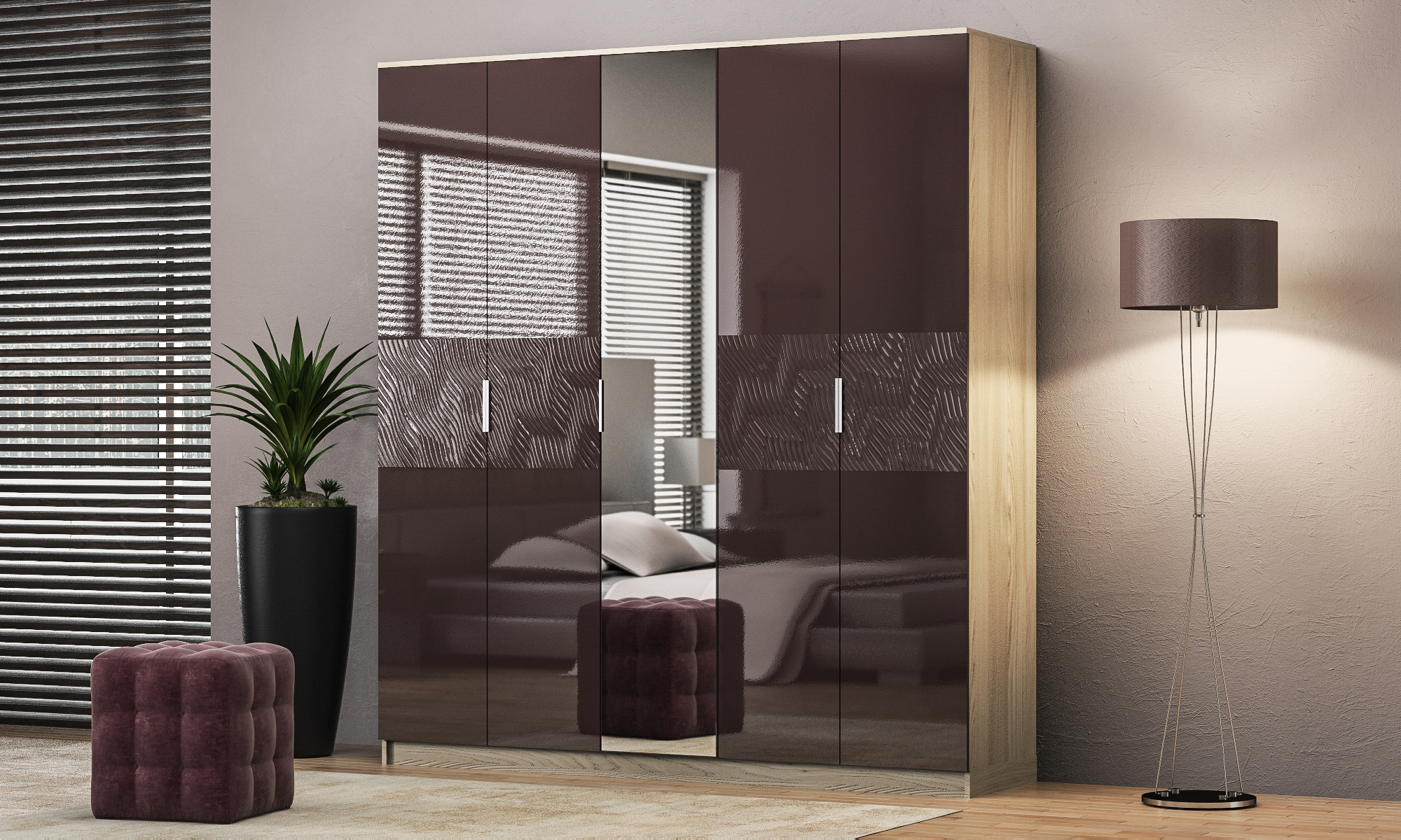 Шкаф распашной 5-ти дверный "Глянец 3Д-12"