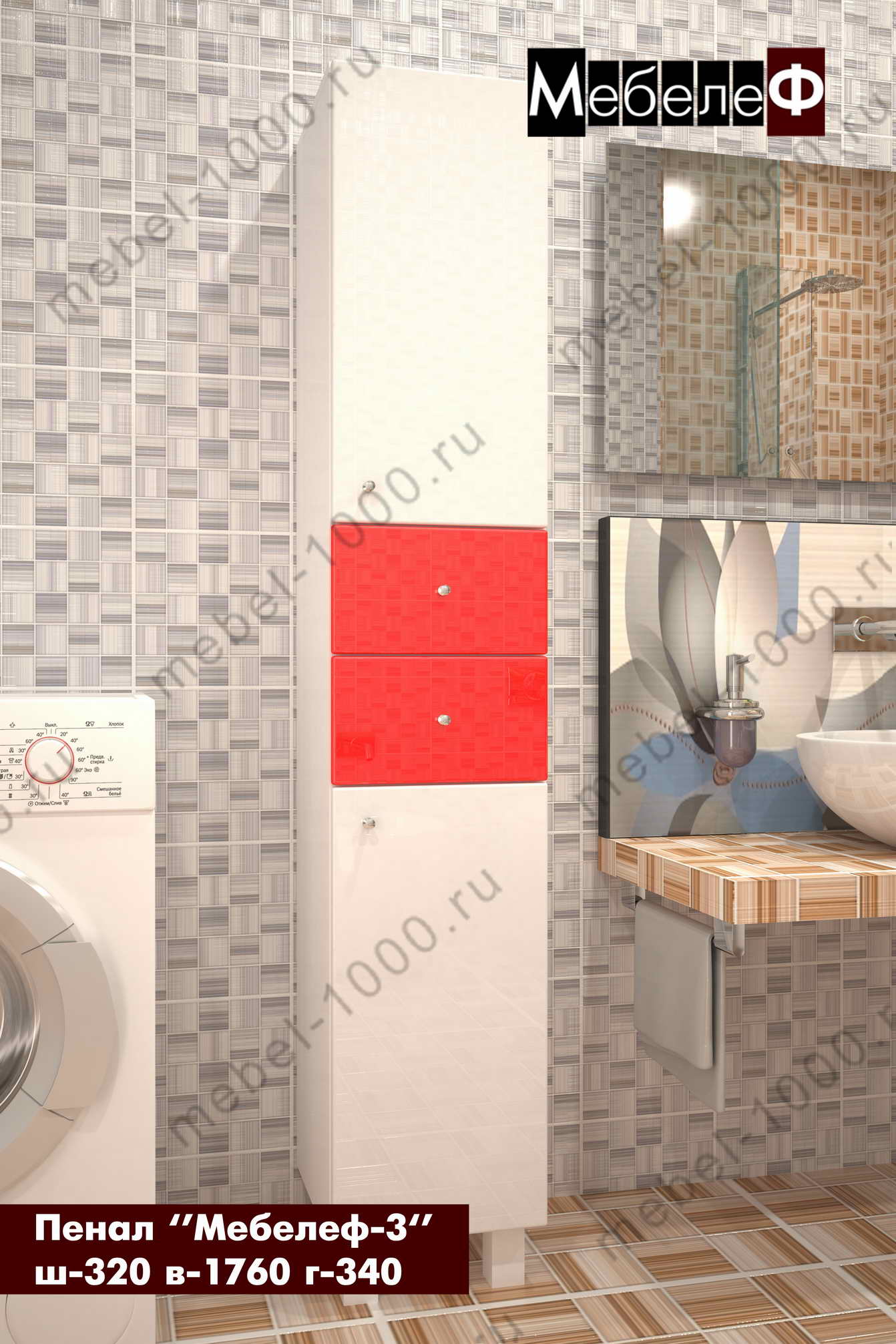 Пенал для ванной "Мебелеф-3" купить недорого в МосквеПенал для ванной "Мебелеф-3"